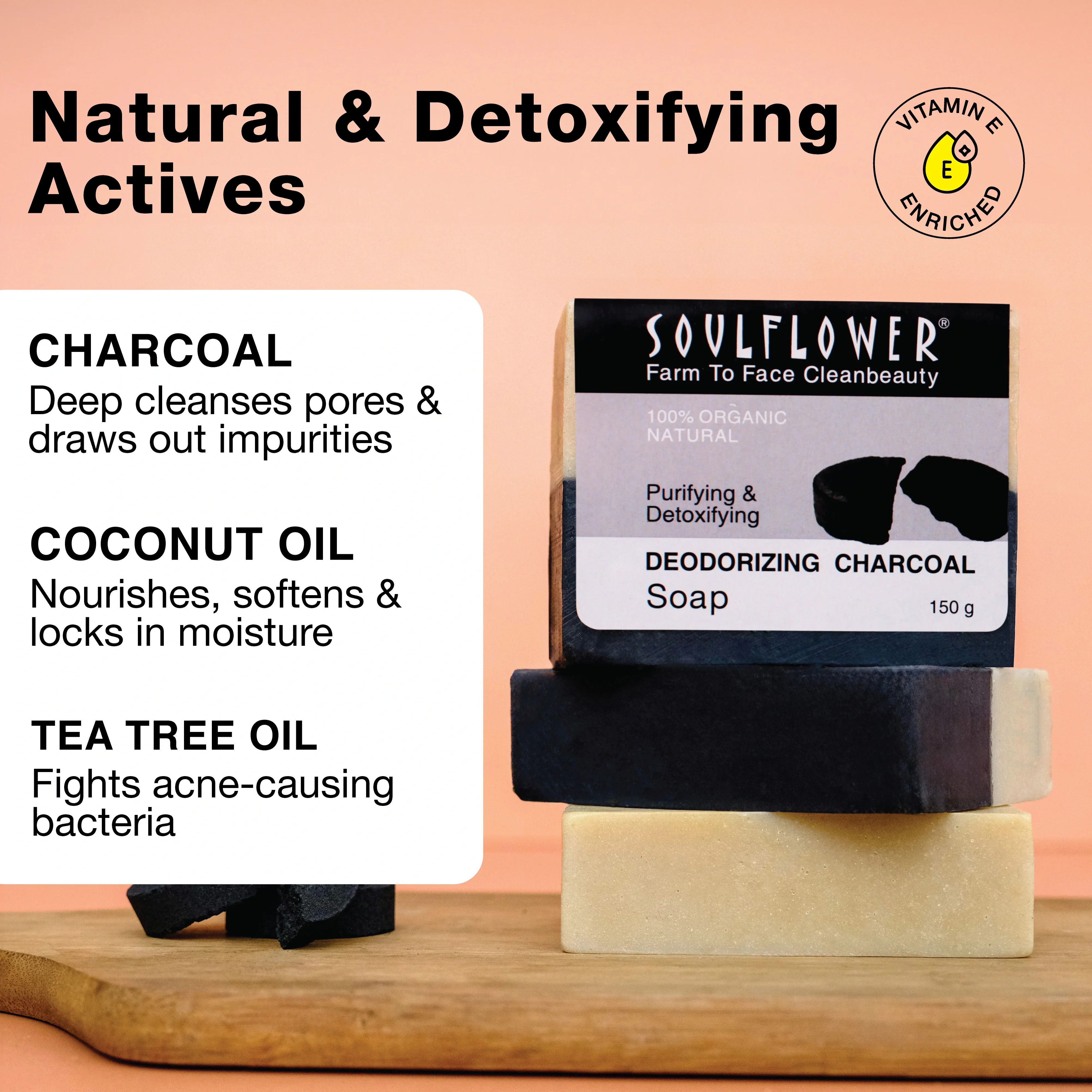 - Activated Charcoal for purifying & detoxifying skin.